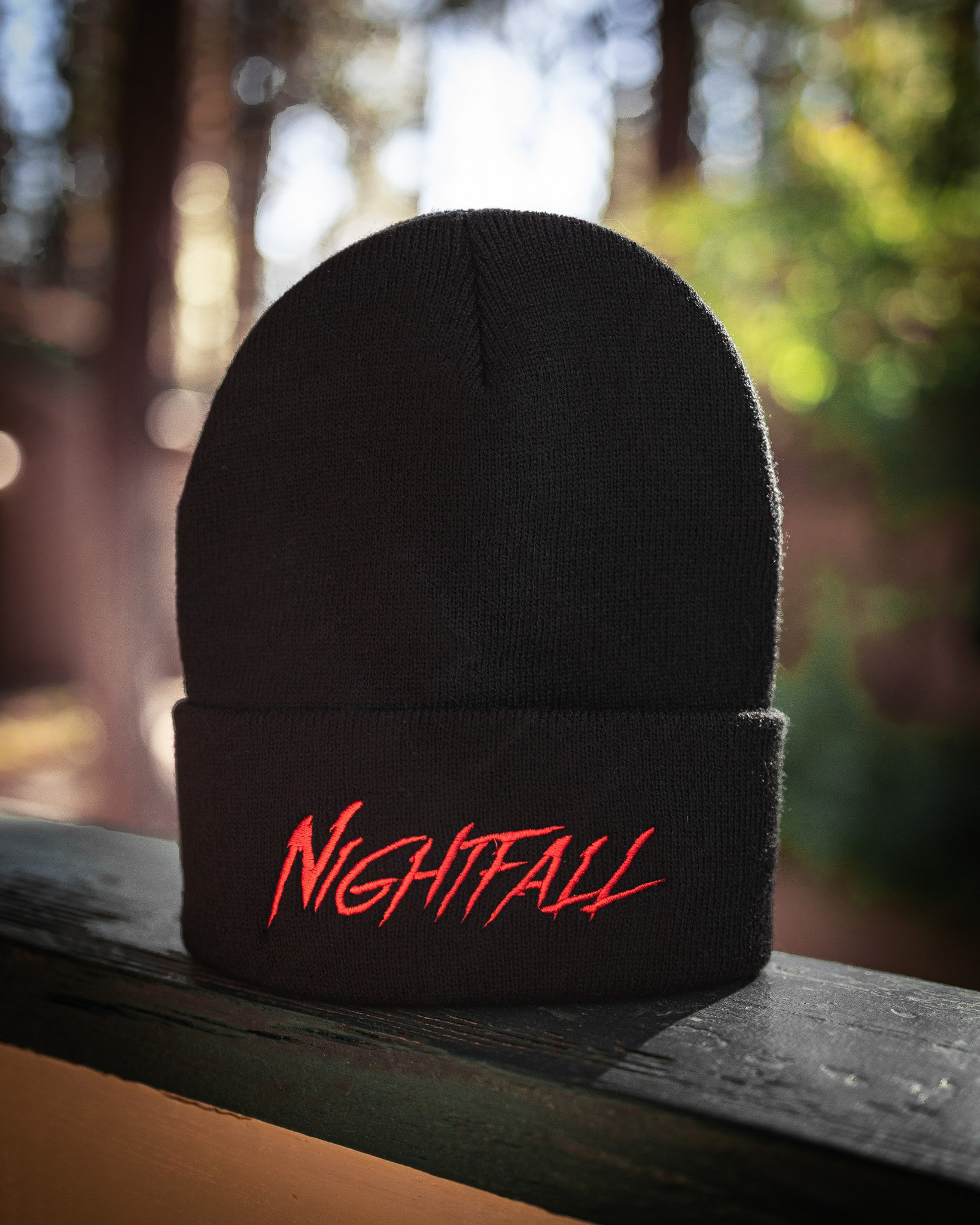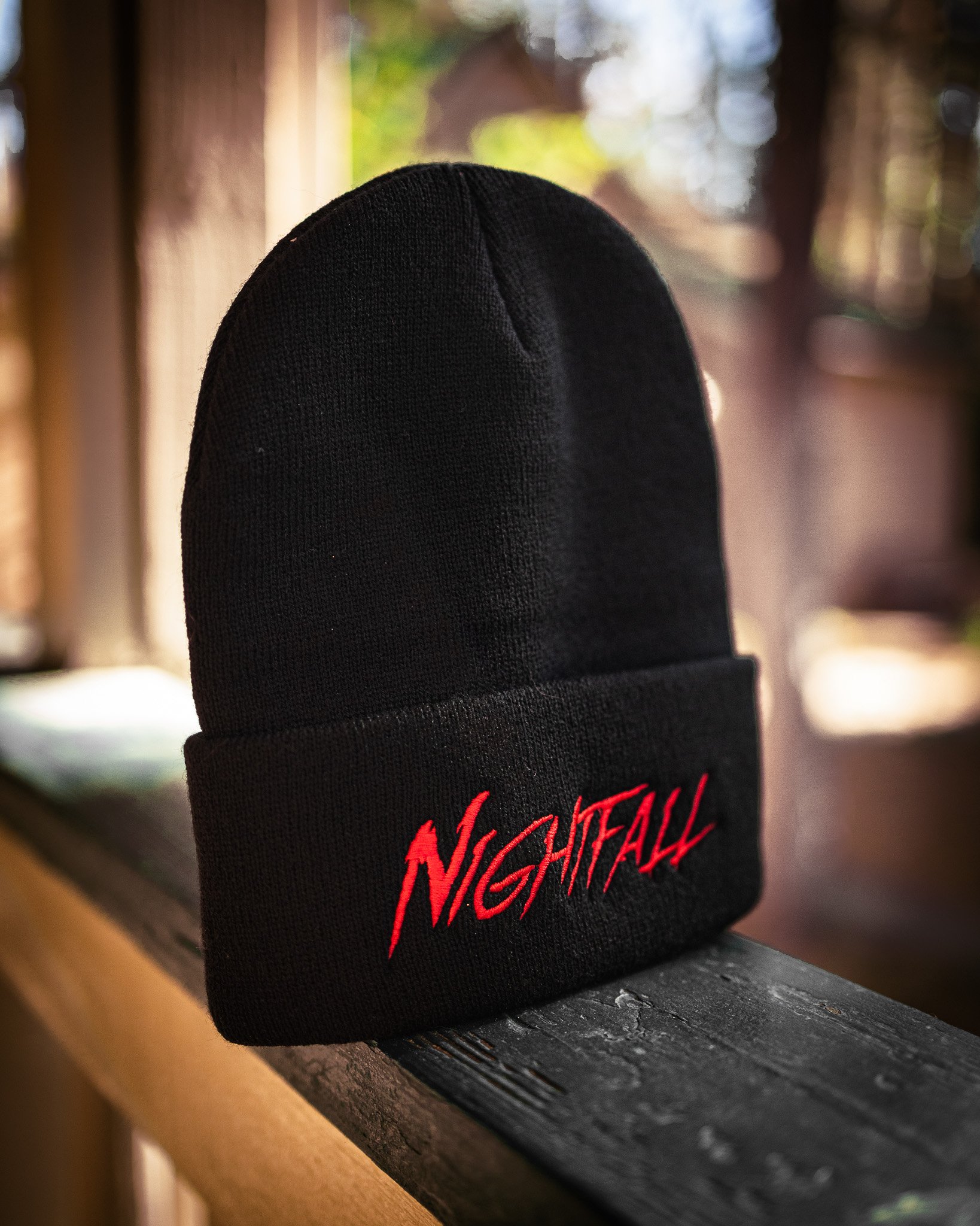 Red on Black Stitched Beanie